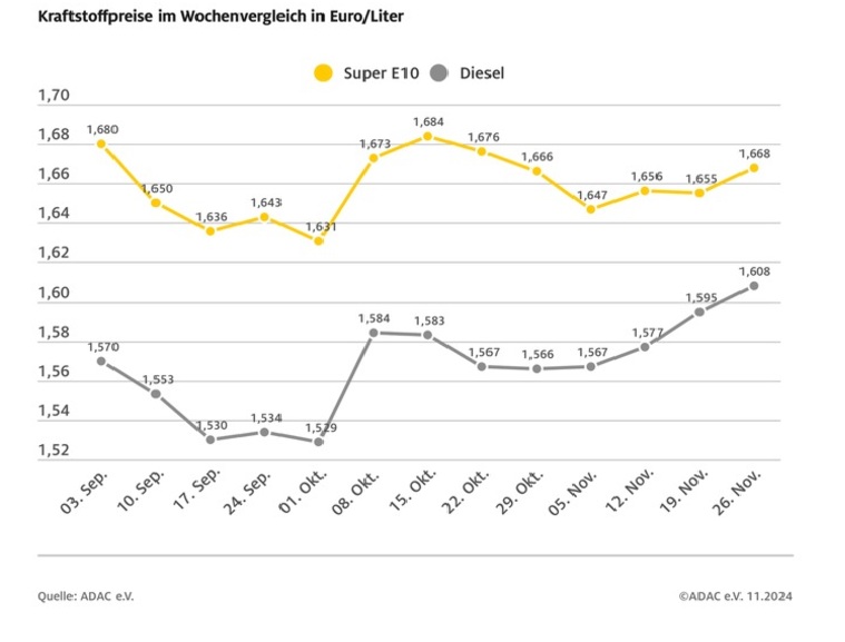 ADAC: Beide Kraftstoffsorten teurer als vor einer Woche – Anstieg um jeweils 1,3 Cent je Liter