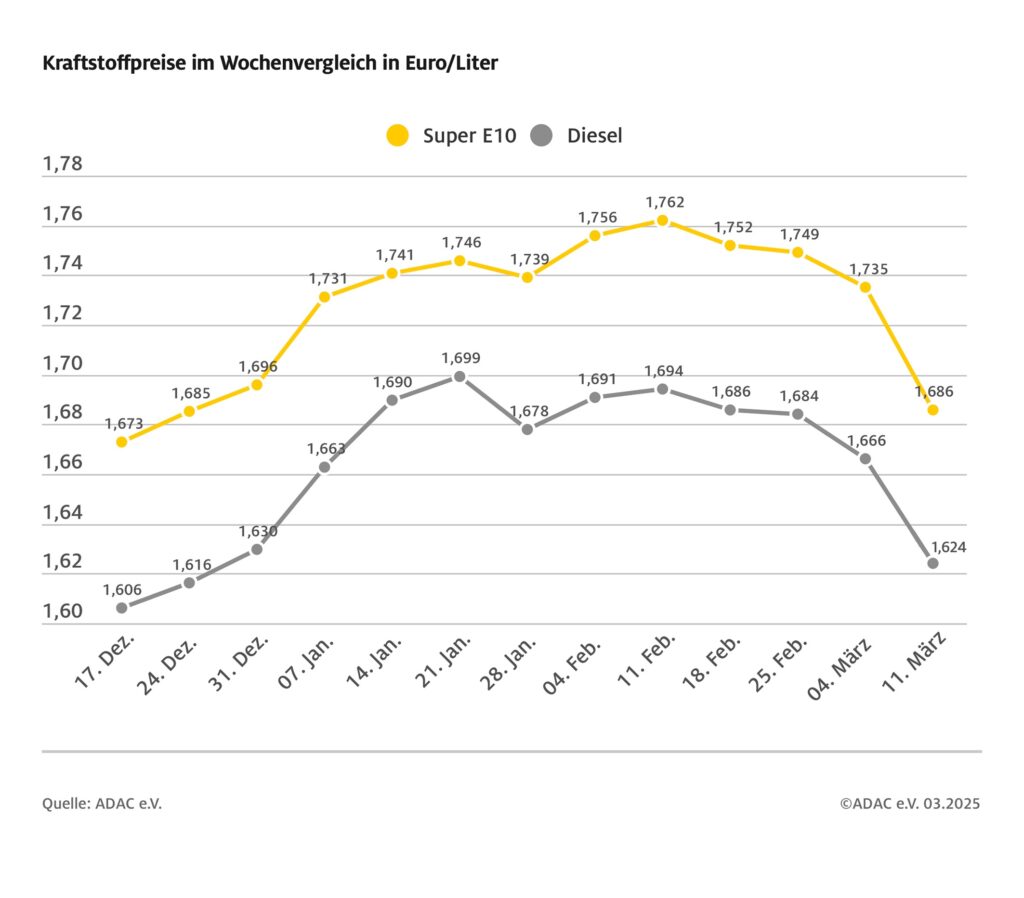 ADAC: Kraftstoffpreise auf neuem Jahrestief – Super E10 im Wochenvergleich 4,9 Cent billiger, Diesel um 4,2 Cent – Rohölpreis auf Dreijahrestief